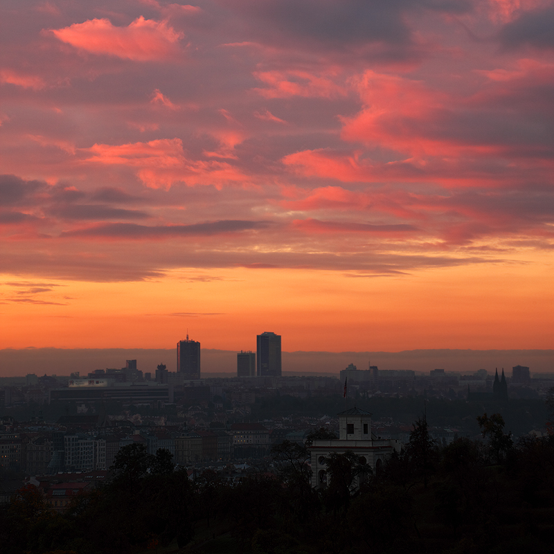 Rudý východ nad Pankrácem